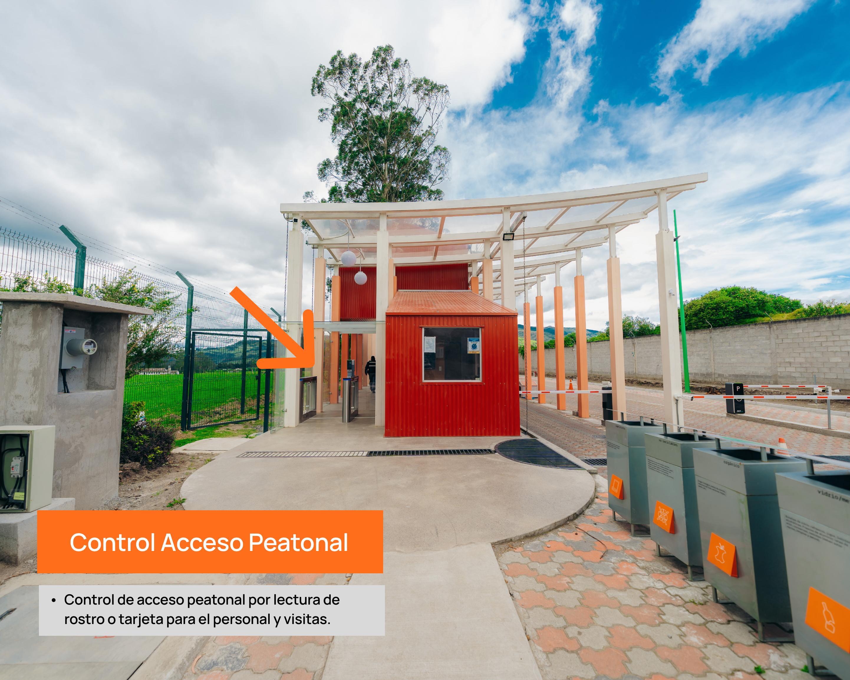 • Garita con Sistema de control de accesos tanto peatonal como vehicular y pantallas de control de alarma.